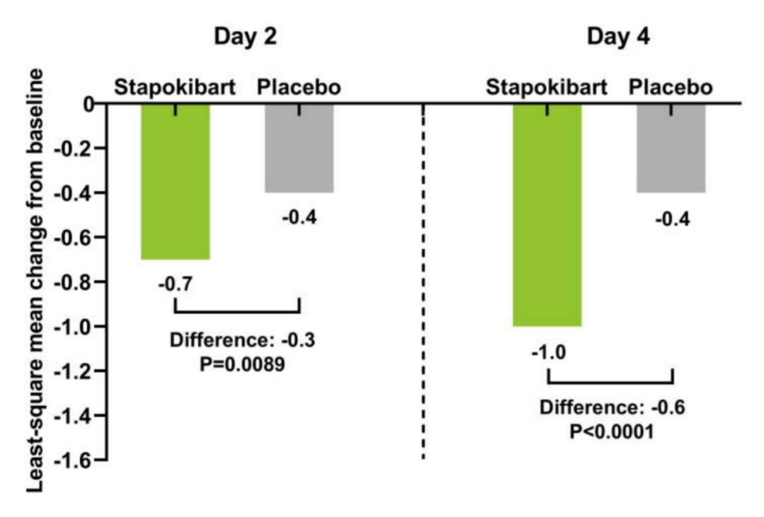 图1. 每日回顾性鼻塞评分相较基线的最小二乘均值变化