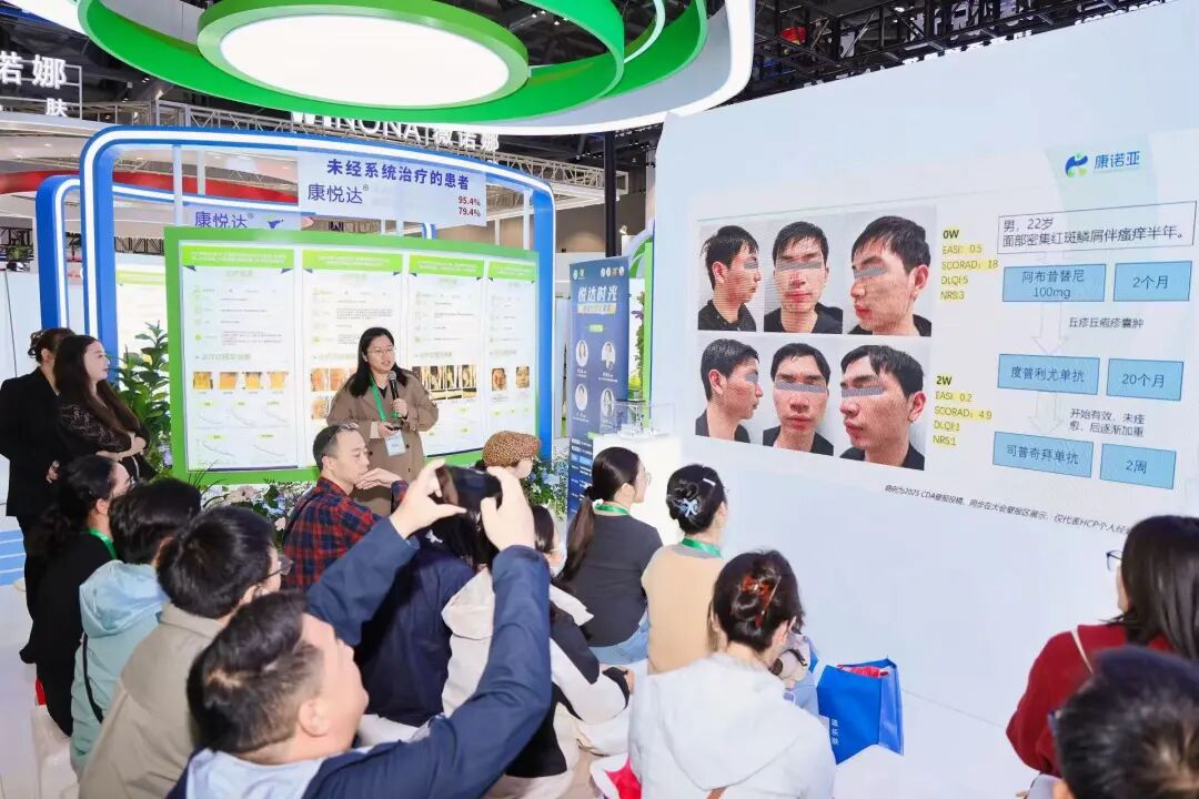 在为期4天的CDA2025学术交流中,“悦达时光·壁报分享小课堂”于康诺亚特装展台同步举行,吸引众多参会者驻足聆听。来自多家医疗机构的资深医师围绕“司普奇拜单抗在临床真实人群中的应用”展开深入交流,呈现了一场紧贴实战的“小而精”知识盛宴。不同中心的临床视角交汇,为特应性皮炎管理带来更多“可复制、可实施”的经验启示,为规范化与个体化诊疗提供了新思路。