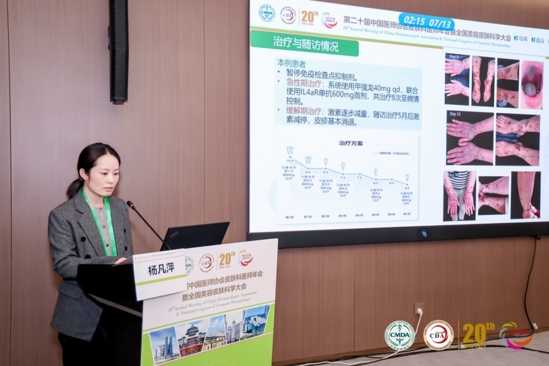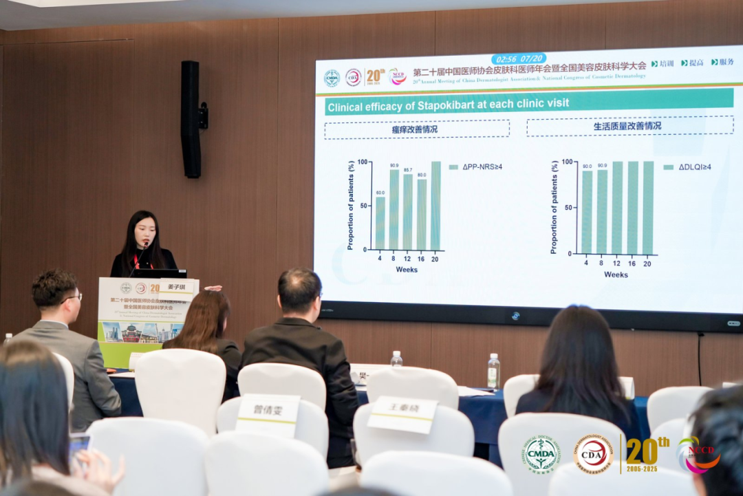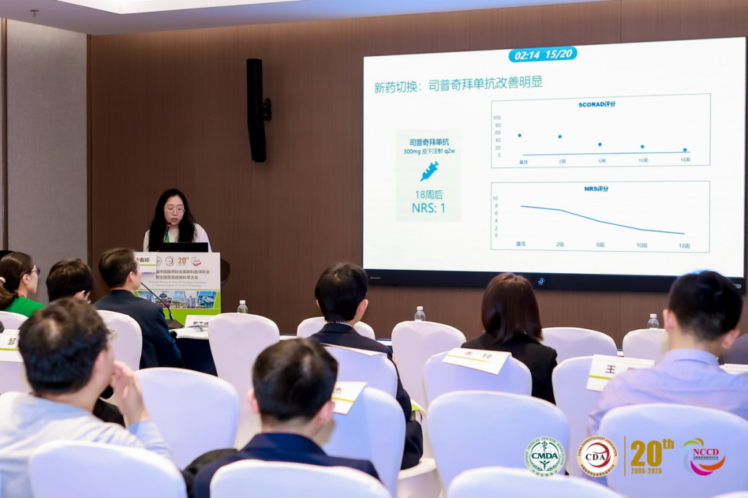 在本次CDA大会的多场专题学术汇报中,多位专家围绕司普奇拜单抗的临床应用展开深入分享,涵盖中重度特应性皮炎、2型炎症性皮肤病、老年及青少年等不同年龄人群等多个方向。相关报告从不同临床场景出发,进一步丰富了该药物的真实世界循证证据,为其精准用药与专病管理提供了有力支撑。